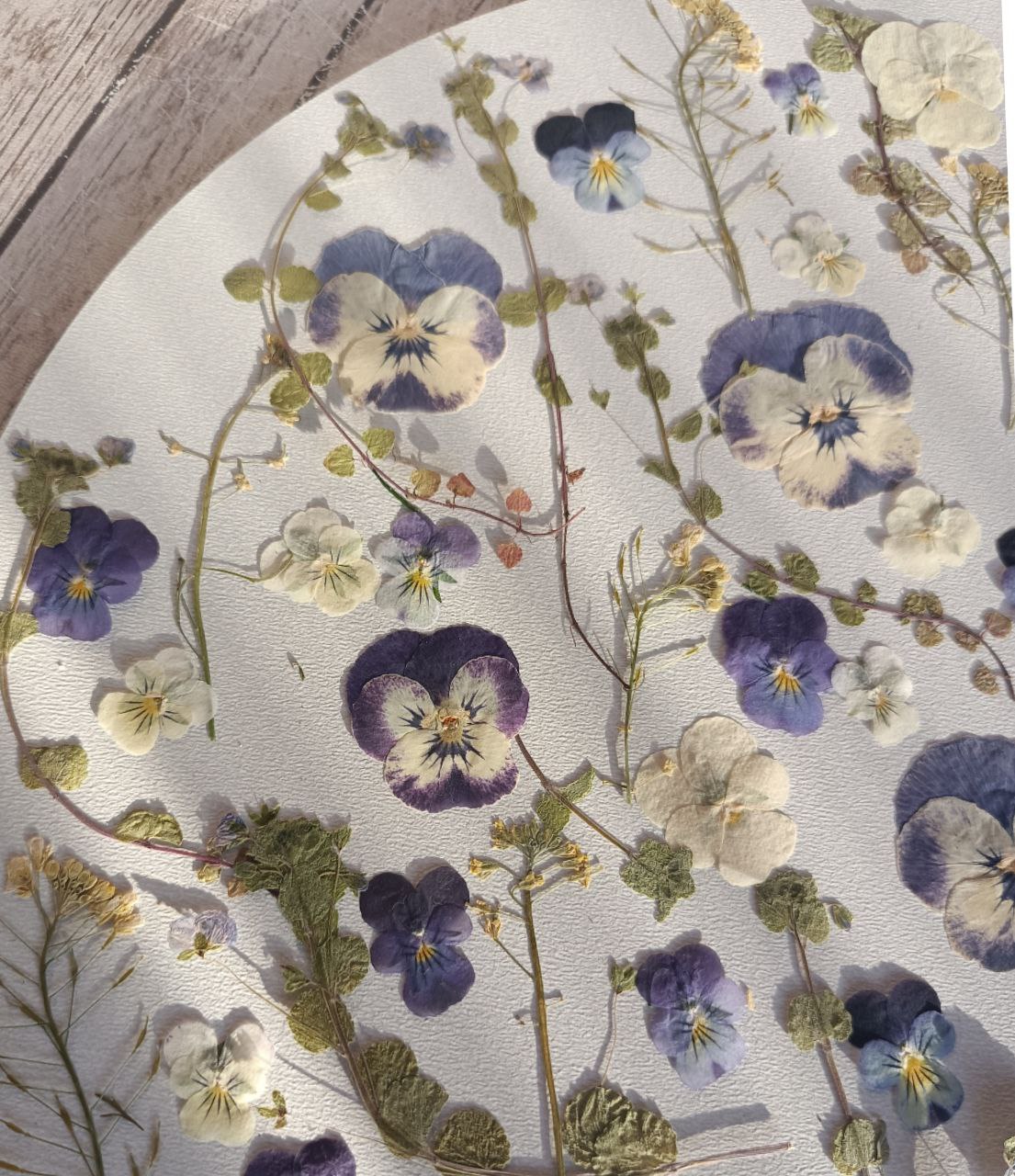 Набор плоских сухоцветов для смолы и творчества с виолой, вероникой и анютиными глазками.